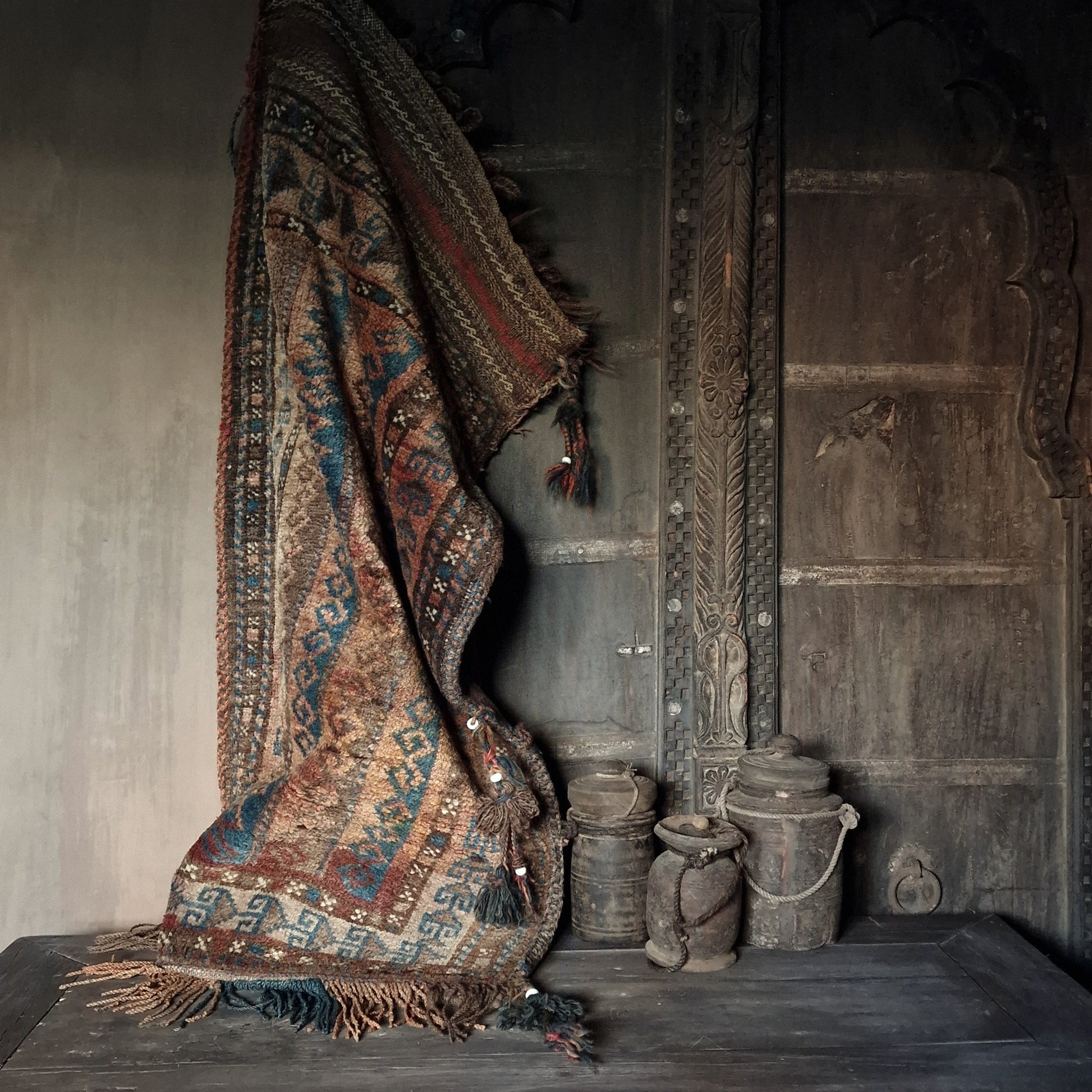 Oorspronkelijk gebruikt als transportzak tijdens nomadische reizen.