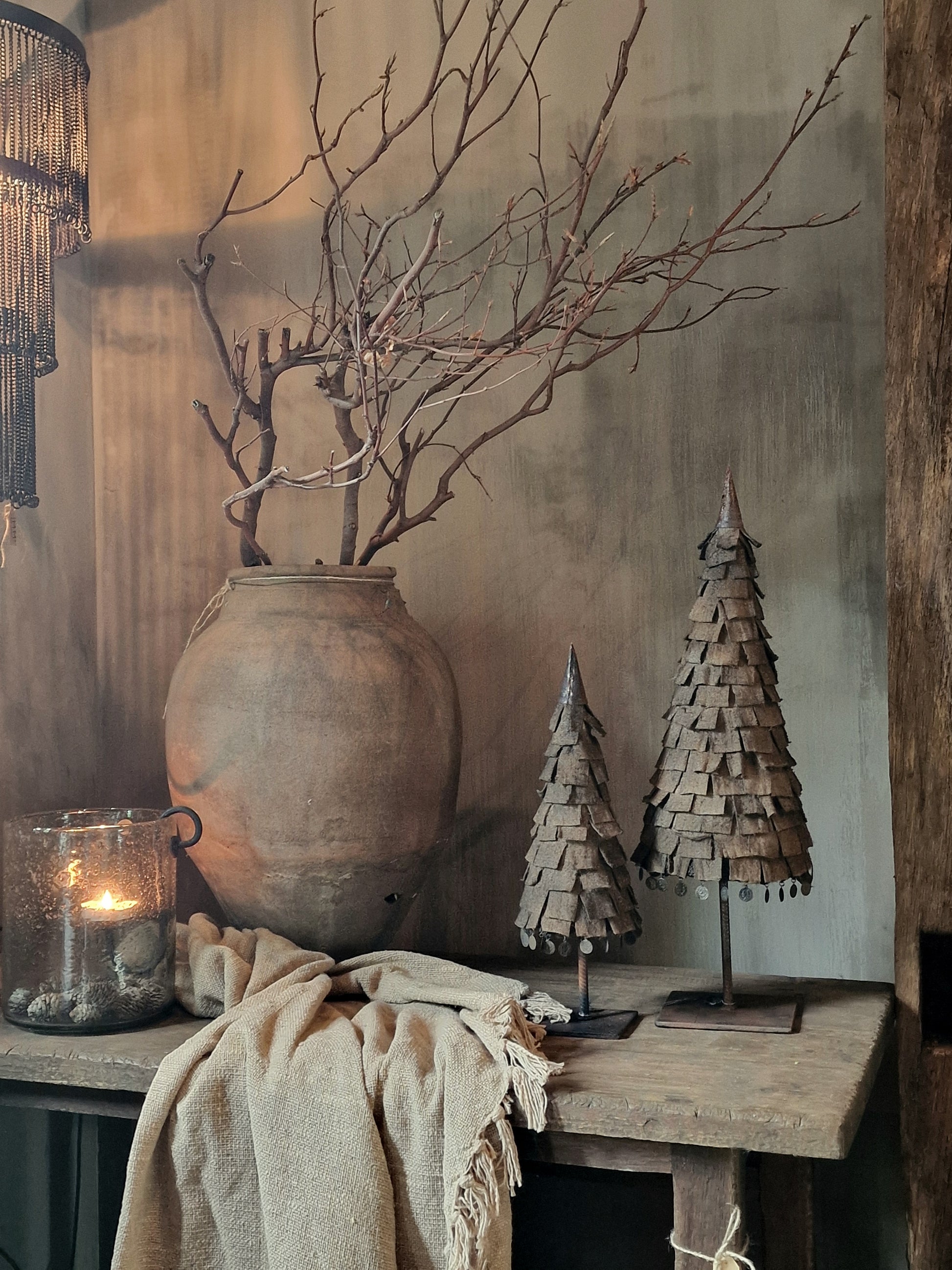 Boompje op ijzeren statief, gemaakt van shabby linnen lapjes.