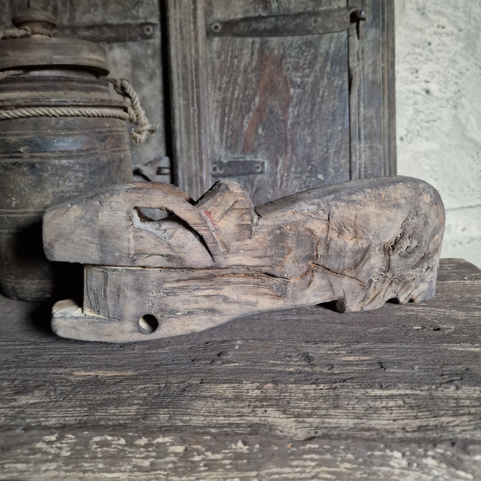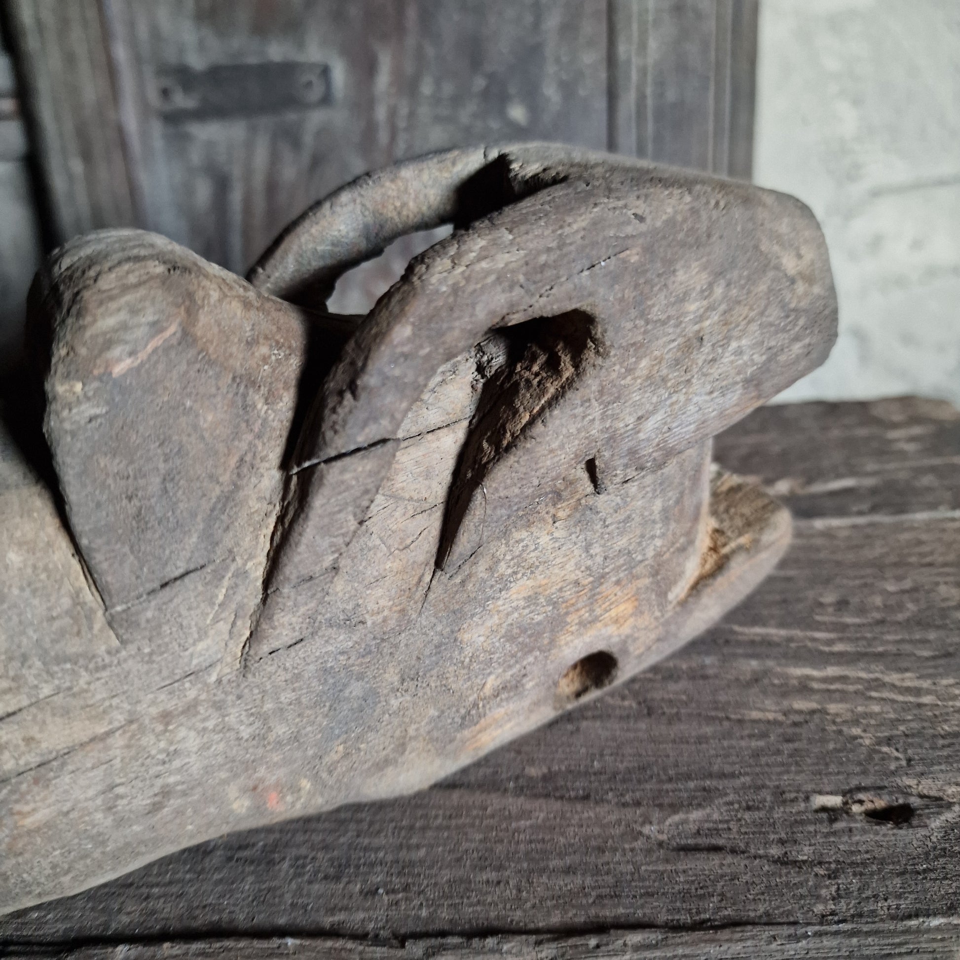 Dit uniek object is uit één stuk hout gesneden, primitief dier sculptuur.