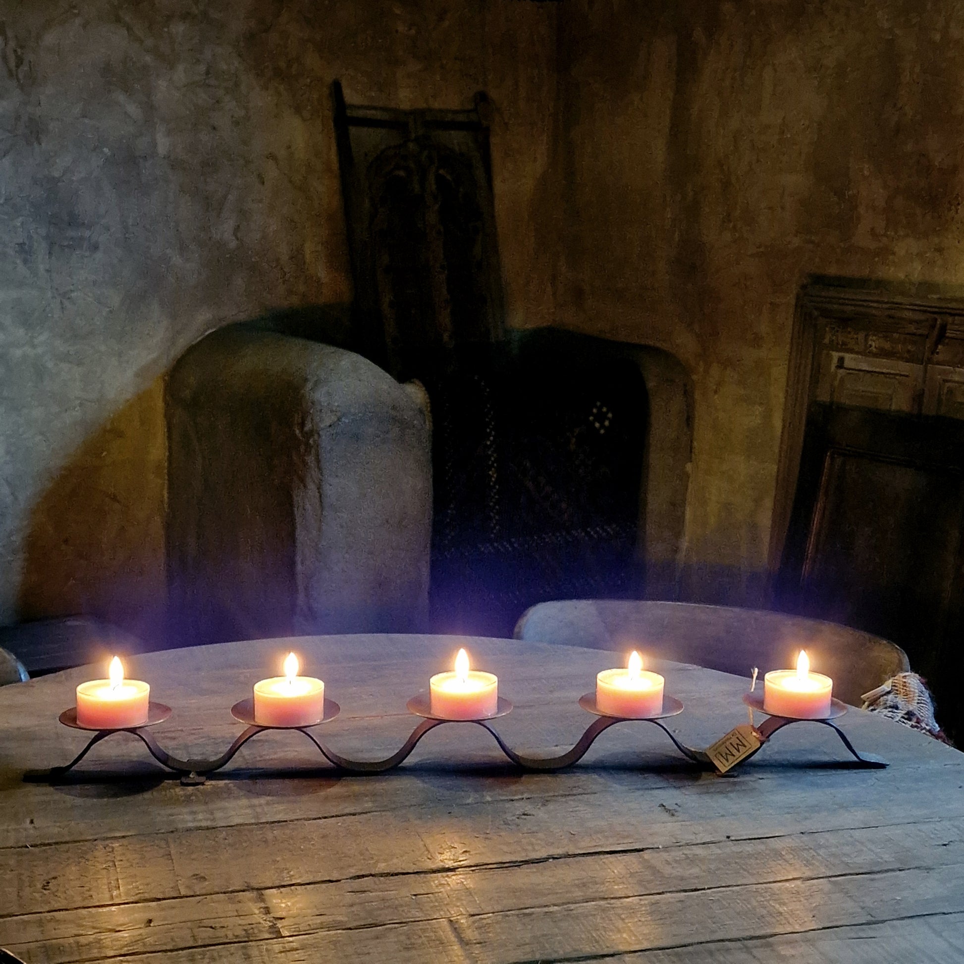 Ijzeren kandelaar voor 5 waxine lichtjes of stompkaars.