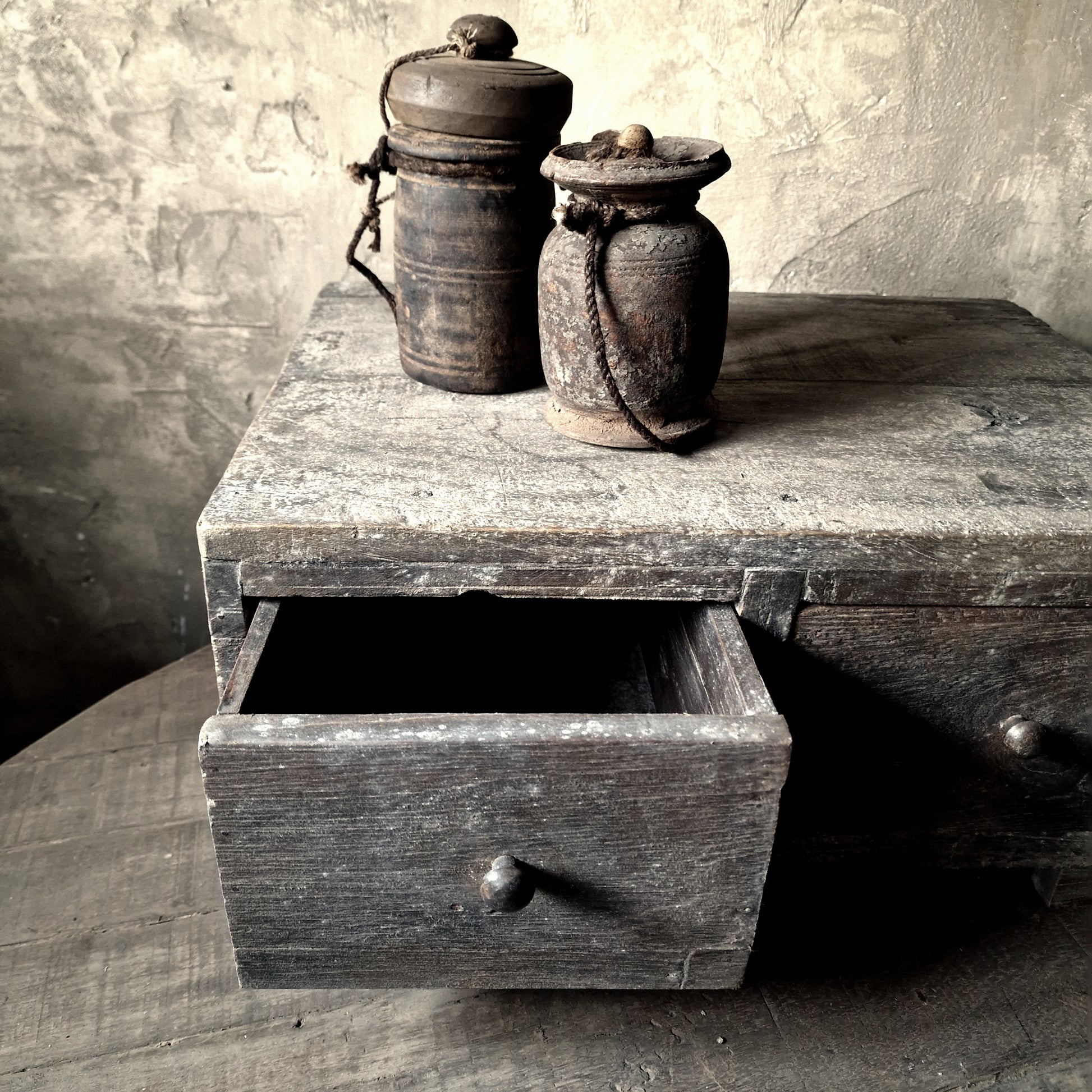 Dit ladenkistje heeft een prachtige vergrijsde oud houten uitstraling.