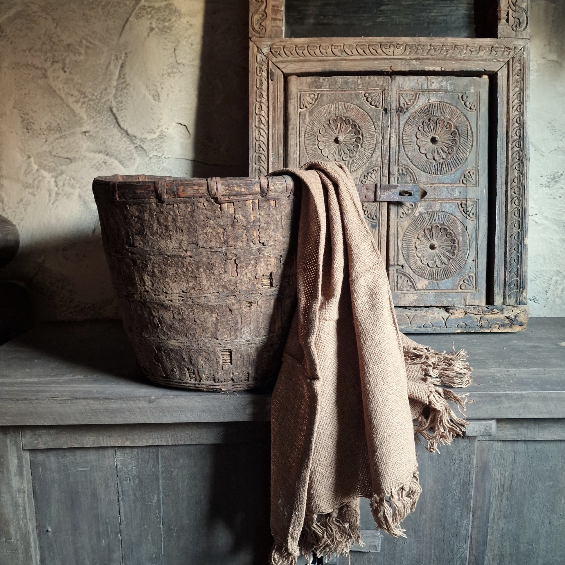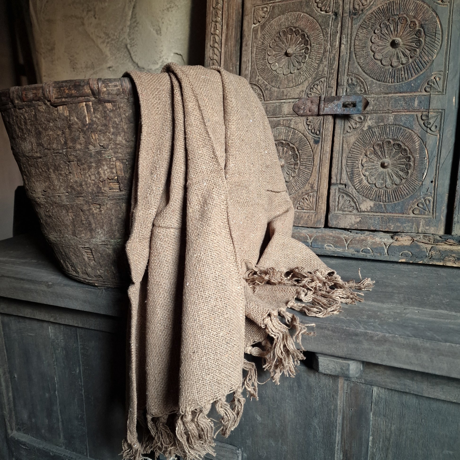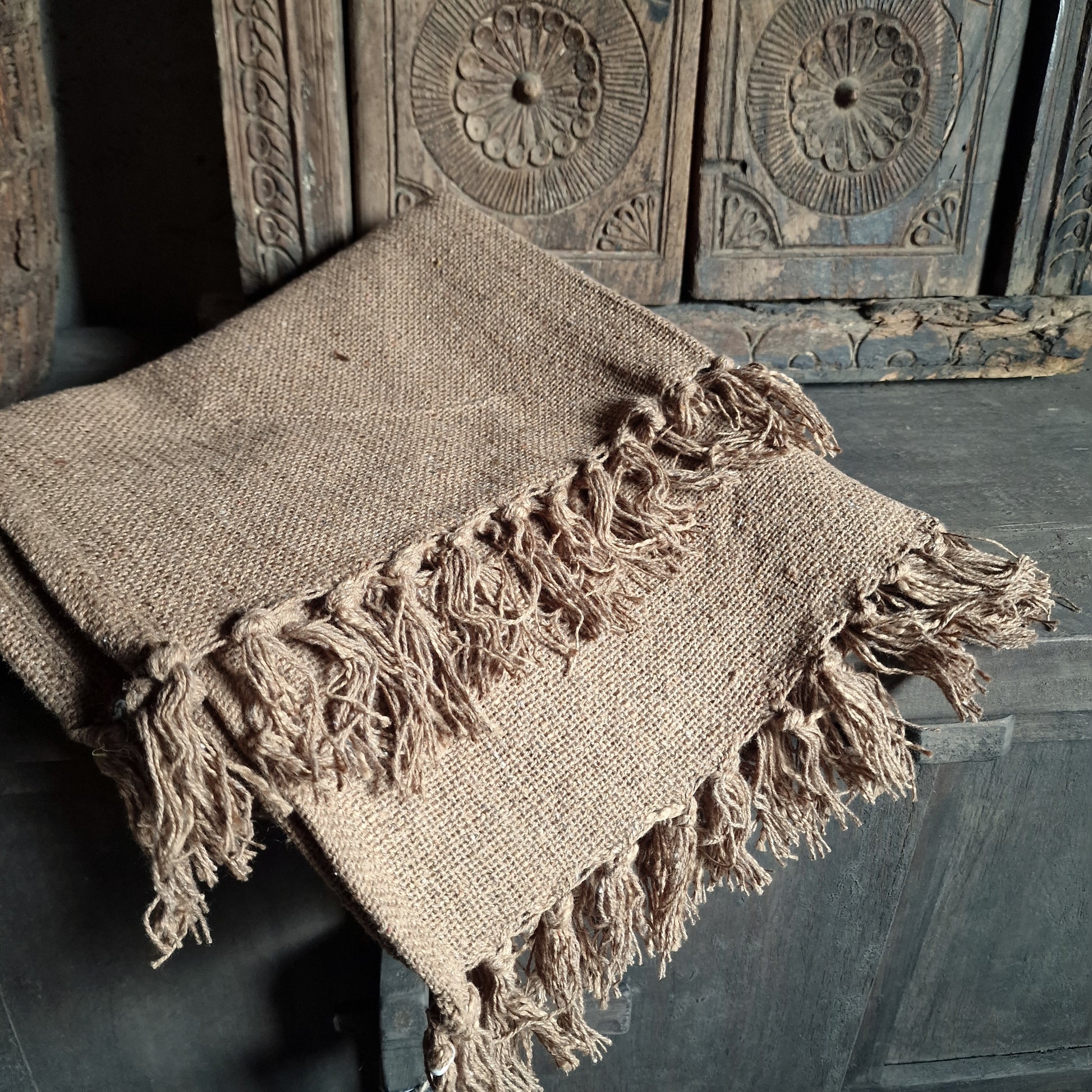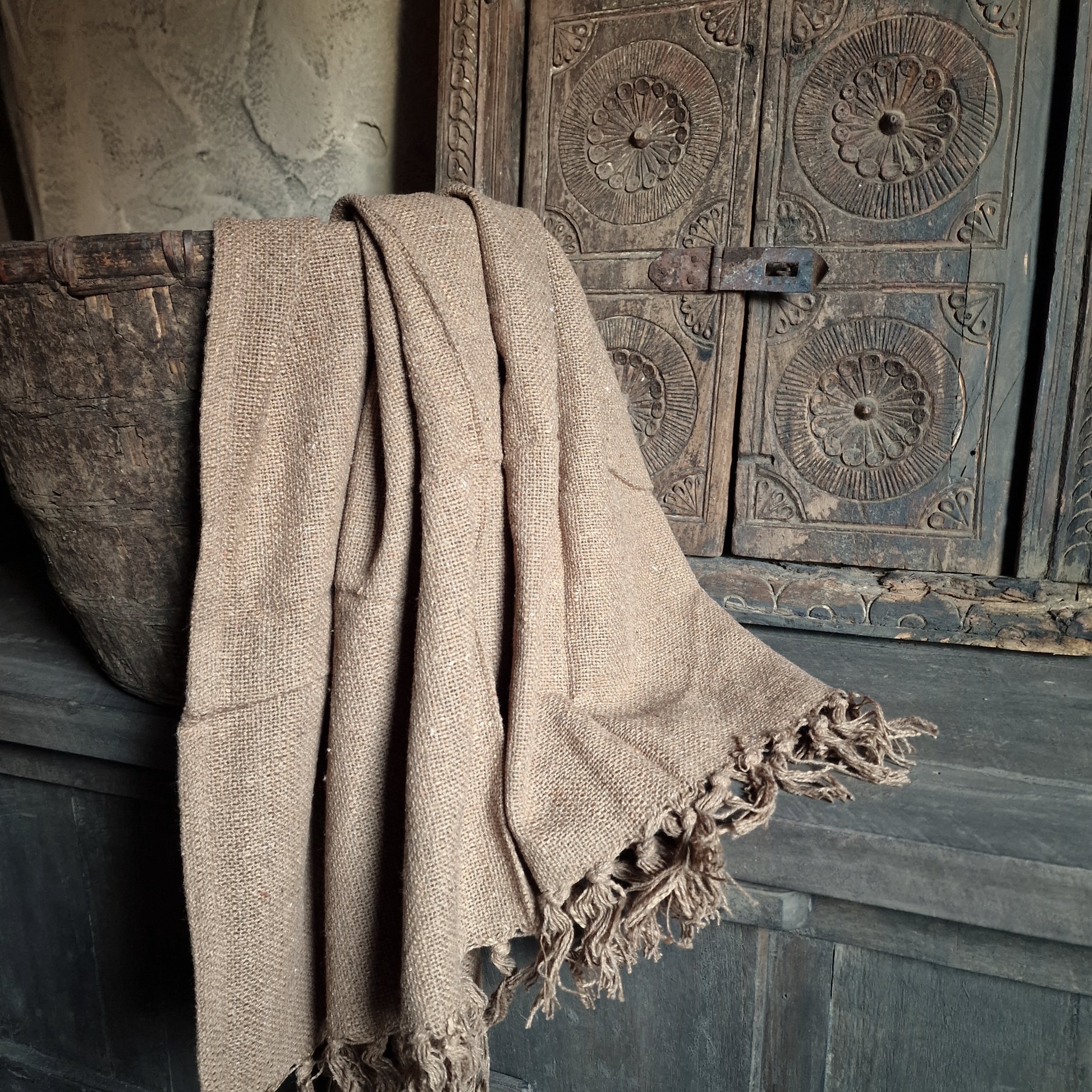 Prachtig grof geweven plaid met franjes.